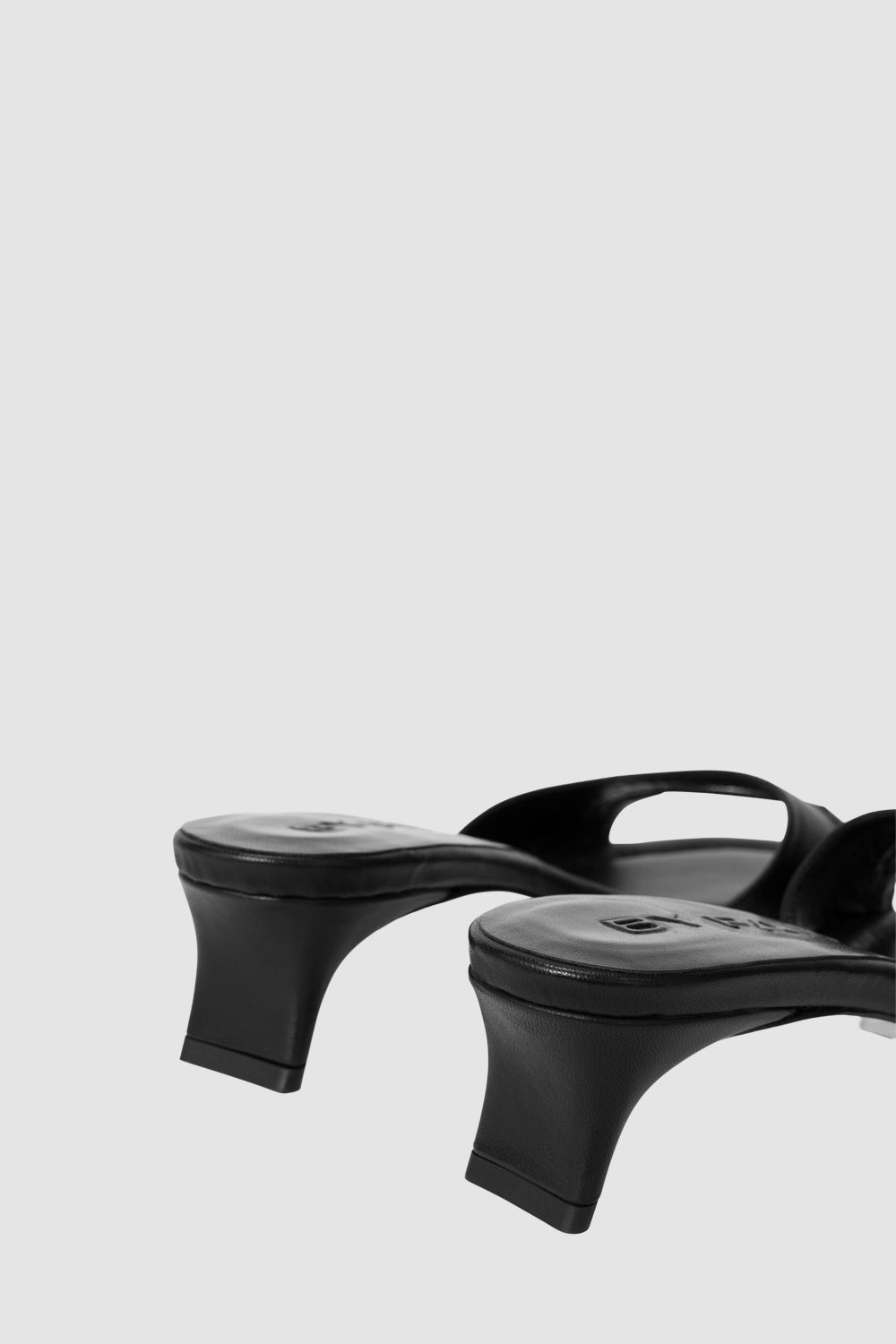 Lambskin leather slip-on mule with a 4 cm leather-covered heel and padded footbed for added comfort. Finished with a leather sole.
