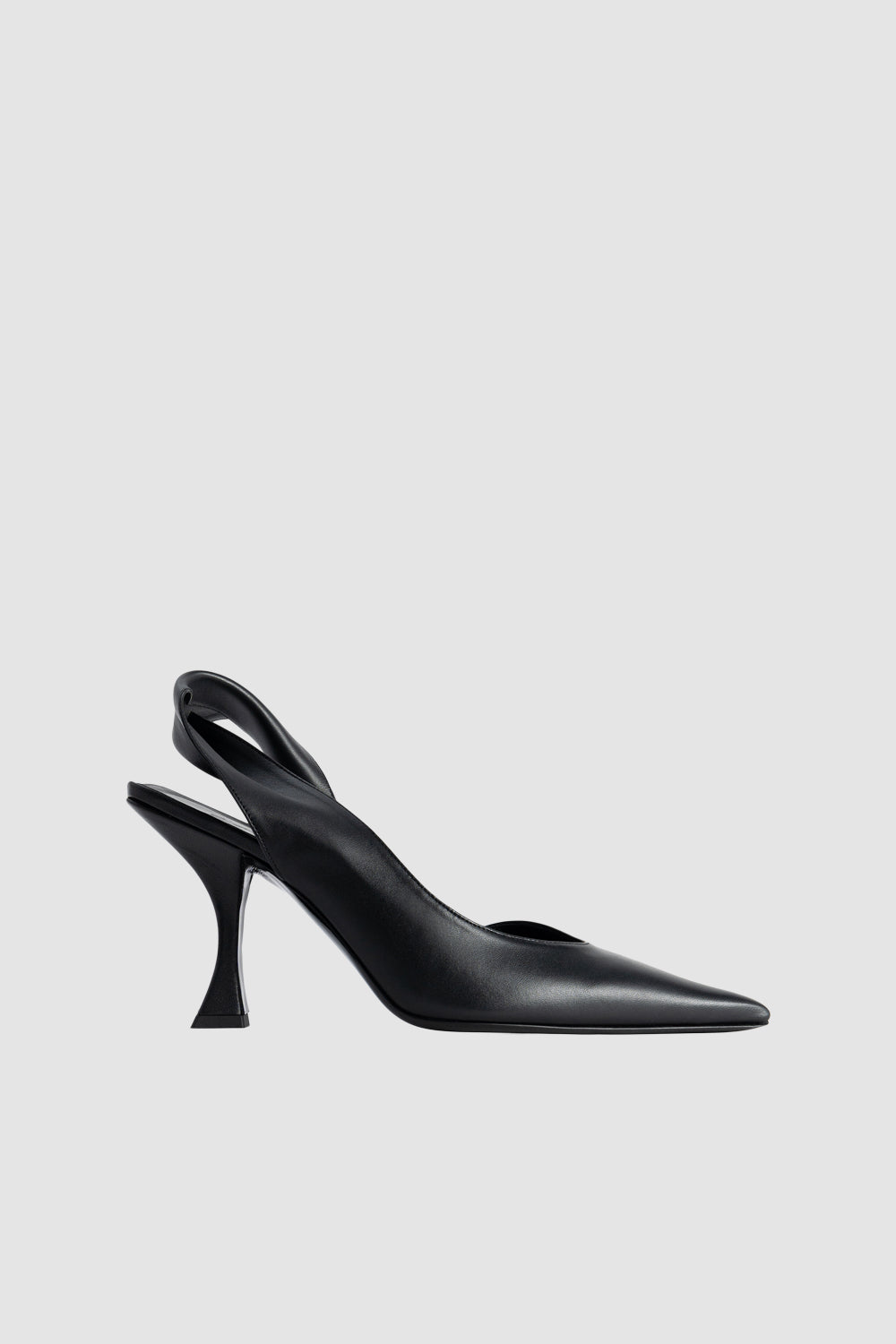 Cowhide leather pumps with a pointed toe and a 9 cm leather-covered sculpted heel. Features a twisted back strap.