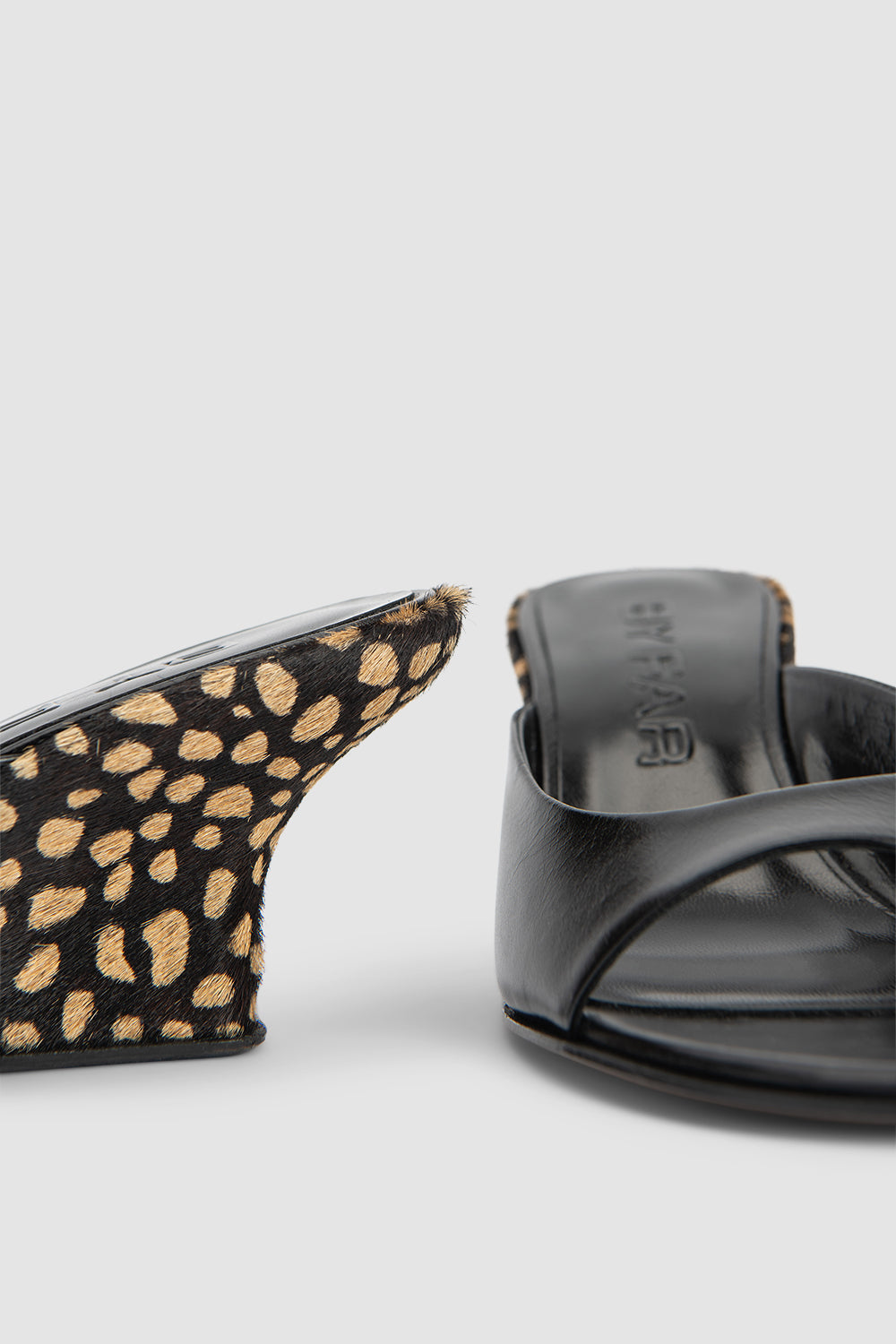 Cheetah pony hair mule with a covered sculpted wedge heel and an open round toe. Part of the Pony Capsule collection.