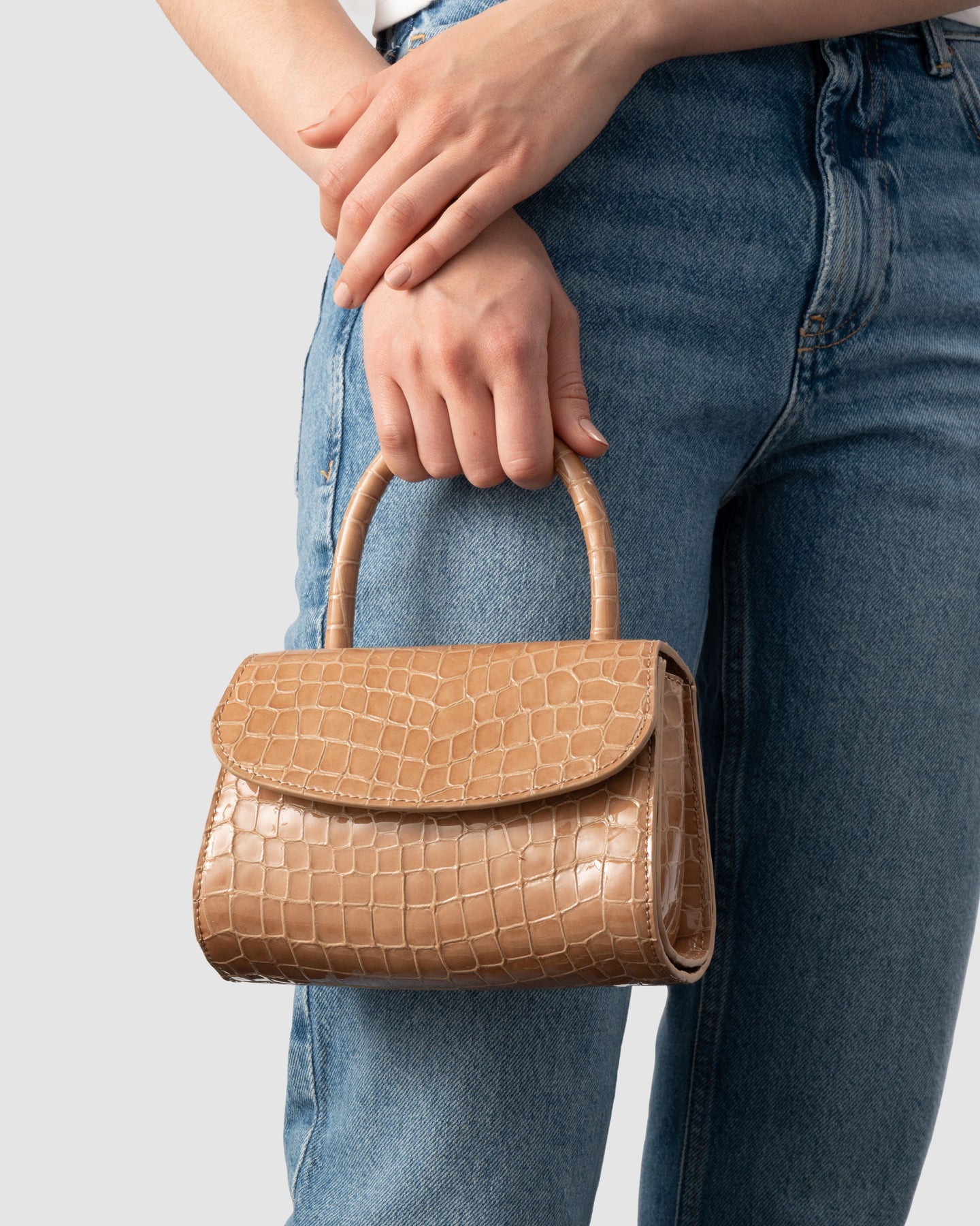 Mini 2.0 Light Tan Croco Embossed Leather Top-Handle Bag