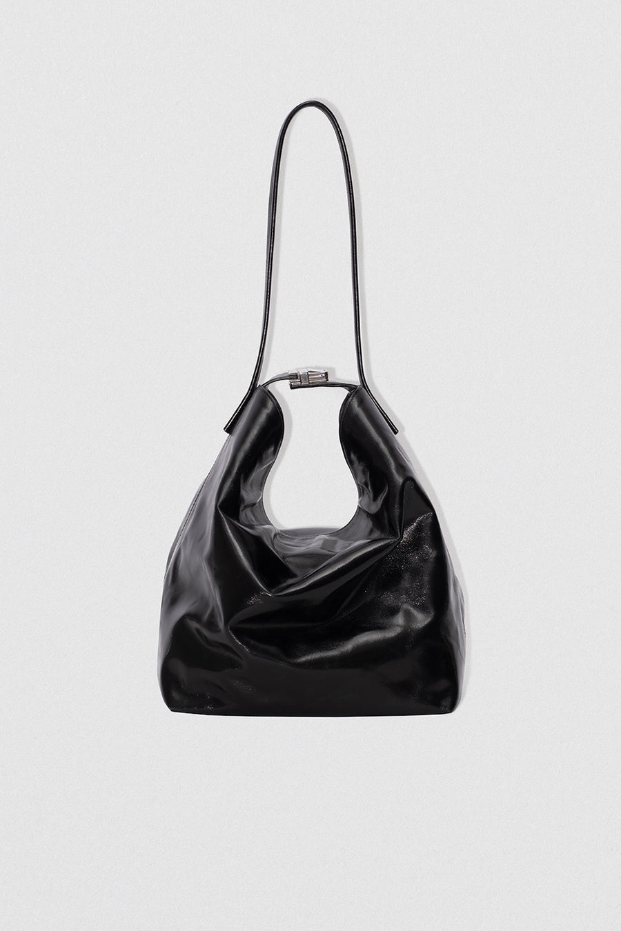 Soft and slouchy creased leather hobo bag with metal hardware and a magnetic closure. Finished with a micro suede lining and an inside logo patch. The style is from LWG certified leather.