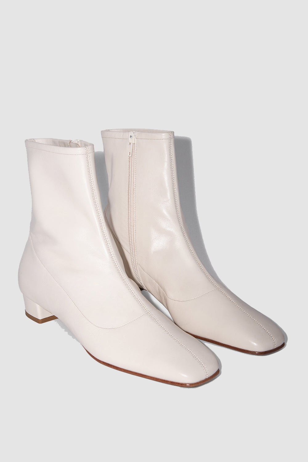 Leather ankle boots with a glove-like fit and a 3 cm leather-covered block heel. Featuring an internal side zip, delicate central seaming, and a rounded toe. Made from LWG-certified leather.